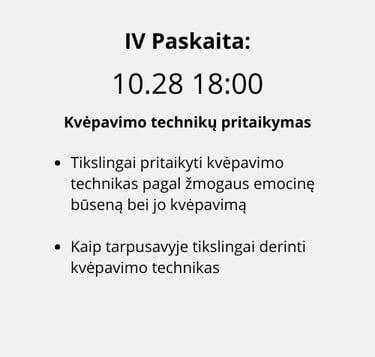 Tu išmoksi kurti efektyvias, individualiai pritaikytas kvėpavimo meditacijas, orientuotas į įvairias klientų problemas ir poreikius.