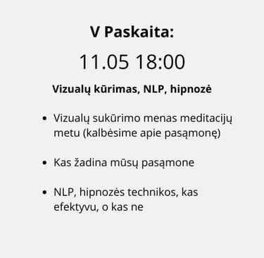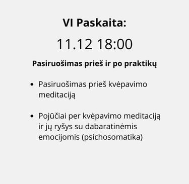 Po mokymų turėsi visas priemones vesti gyvai bei kurti online meditacijas profesionaliai.