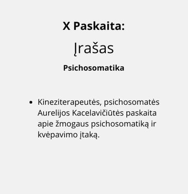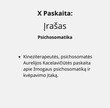 Diplomuota somatinių praktikų instruktorė ir terapinių praktikų lektorė, psichologė praktikė, savanorė skambučių centre - sukaupusi gilią patirtį psichologinio žmogaus pažinimo, konsultavimo ir kvėpavimo įvaldymo srityje.